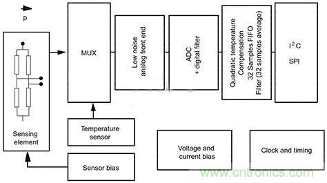 圖3:LPS25H可在一個10針腔洞穿LGA封裝(HCLGA),其測量為2.5&TImes;2.5&TImes;1毫米,并躲藏允許外部壓力到達(dá)壓電傳感元件。該接口使用標(biāo)準(zhǔn)的CMOS工藝,允許高度集成的設(shè)計(jì)被修整,以更好地匹配感測元件特性的專用電路。制造。整個測量鏈?zhǔn)怯梢粋€低噪聲放大器,其中,所述MEMS傳感器(壓力,溫度)的電阻不平衡轉(zhuǎn)換為模擬電壓,向用戶提供通過嵌入24位模擬 - 數(shù)字轉(zhuǎn)換器(組成ADC),帶有一個輸出數(shù)據(jù)速率(ODR),它是可選擇的從1赫茲到25赫茲,單觸發(fā)選項(xiàng)。所述LPS25H可在一個10針腔洞穿LGA封裝(HCLGA),其測量為2.5×2.5×1毫米,并躲藏允許外部壓力到達(dá)傳感元件。使用壓電元件允許它的溫度范圍從-30℃至+ 105℃上操作。