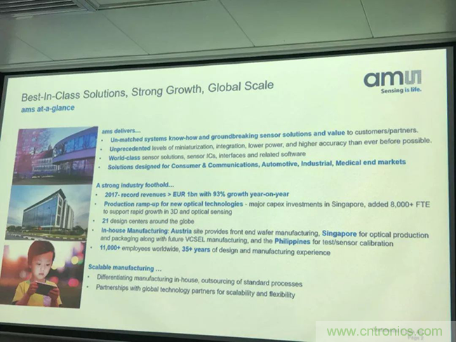 ams大中華區(qū)銷售和市場副總裁陳平路指出,“我們?cè)谥袊鴧^(qū)的員工有超過50%都是技術(shù)研發(fā)人員包括一個(gè)專注于整體方案的研發(fā)團(tuán)隊(duì),加強(qiáng)與本地企業(yè)深入合作。”