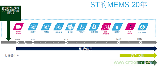 在過去的20年,消費類應用使不同類別的MEMS傳感器實現(xiàn)了從雛形,到大批量生產、直至大批量應用的過程,這些傳感器包括加速計、陀螺儀、慣導模塊、磁力計、氣壓計、溫度計、氣體壓力計、以及最近幾年越來越多的環(huán)境類傳感器。