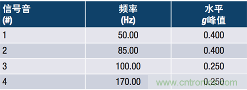 在振動測試儀上重建了一個實際場景,例如在基于振動的狀態(tài)監(jiān)控中所述的場景,以便利用已知激勵信號比較器件。本例展示了一臺以5100 rpm (85 Hz)運轉(zhuǎn)的汽輪機和一臺未對準的3000rpm (50 Hz)同步發(fā)電機的振動水平。該場景說明的是采用隨機振動測試模式時,振動系統(tǒng)經(jīng)編程所產(chǎn)生的頻率和振幅。表1列出了兩個器件在目標頻率的振幅測量結(jié)果。