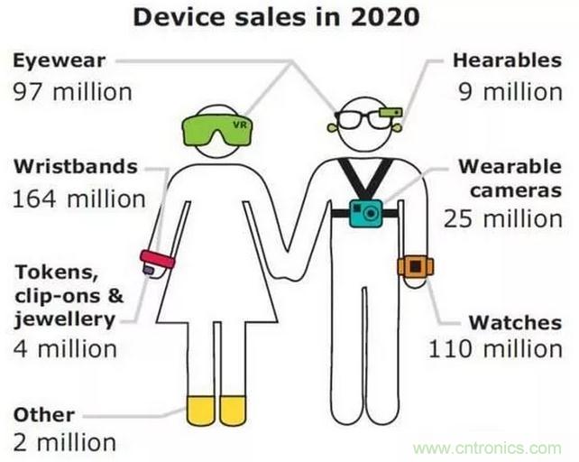 各類可穿戴設(shè)備市場的預(yù)測示意圖