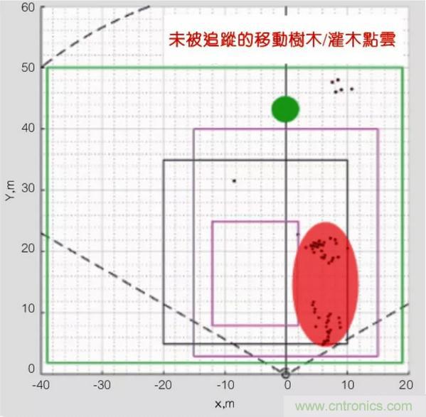 圖2顯示了使用毫米波技術(shù)的入侵探測;毫米波傳感器分析場景中物件的速度,過濾出移動背景中的運(yùn)動,僅追蹤人物。