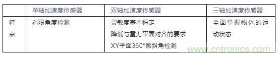 該使用哪種加速度傳感器,應(yīng)根據(jù)具體的應(yīng)用要求而定,比如檢測傾斜角范圍、檢測對象在XYZ三軸運動上是否有限定、檢測精度要求等等。