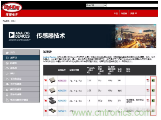 舉個例子, ADI三軸加速度傳感器ADXL355BEZ配套的評估板可以在Digi-Key的產(chǎn)品頁面中配用欄中找到匹配的評估板EVAL-ADXL355Z。也可以通過ADI加速度傳感器選擇與開發(fā)板選擇頁面中最后一欄中找到對應(yīng)的開發(fā)板。