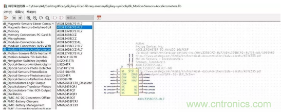 圖4:Digi-Key KiCad符號庫 - ADI ADXL335BCPZ-RL7