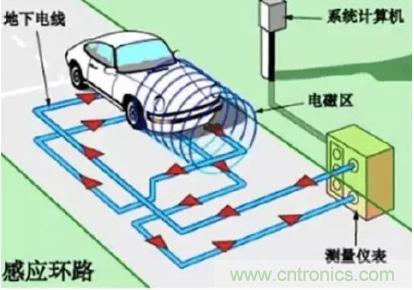 目前,道路檢測(cè)交通流狀態(tài)用的最多的傳感器件是環(huán)形線圈,它可以檢測(cè)交通量、車速、占有率、車頭時(shí)距、車長(zhǎng)、長(zhǎng)車比和車輛存在等多個(gè)項(xiàng)目。環(huán)形線圈檢測(cè)原理如圖所示。線圈由專用電纜繞幾匝(一般為4匝)及其饋線構(gòu)成,它通過一個(gè)變壓器接到被恒流源支持的調(diào)諧回路,有源環(huán)形線圈構(gòu)成LC調(diào)諧回路的電感部分,并在線圈周圍的空間產(chǎn)生電磁場(chǎng)。當(dāng)含有鐵金屬的車體進(jìn)入線圈磁場(chǎng)范圍,車輛鐵構(gòu)件內(nèi)產(chǎn)生自成閉回路的感應(yīng)電渦流,此渦流又產(chǎn)生與原有磁場(chǎng)方向相反的新磁場(chǎng),導(dǎo)致線圈的總電感變小,引起調(diào)諧頻率偏離原有數(shù)值,從而發(fā)出車輛通過或存在的信號(hào)。