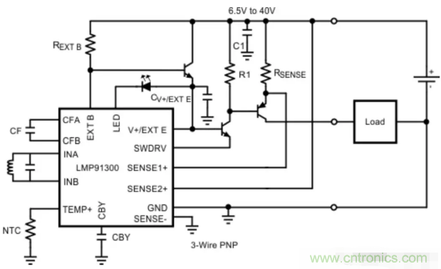 內(nèi)部穩(wěn)壓器允許該器件在6.5V至40V的電源范圍內(nèi)工作??梢詫?duì)輸出進(jìn)行編程,以NPN或PNP模式驅(qū)動(dòng)外部晶體管。