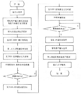 為了提高軟件的可靠性和檢測的精度,本系統(tǒng)采用了模塊化、結構化的設計思想。模塊化使各參數(shù)檢測子程序能獨立完成而不受其它模塊的影響。這種方法使程序在調(diào)試和運行時,具有良好的安全性和可靠性。另外,結構化的順序進行和其判斷功能,使之在程序設計中充分考慮到了各種可能出現(xiàn)的情況,并可自行處理在檢測中出現(xiàn)的一些問題,從而在一定程度上保證了程序的完整性。其軟件的流程圖如下: