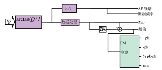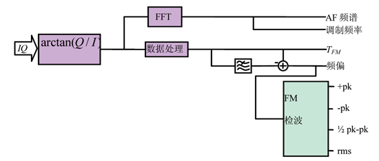 對(duì)此數(shù)組進(jìn)行FFT計(jì)算,得到AF頻譜,其基波頻率即調(diào)制頻率fmod ,根據(jù)AF頻譜,可以計(jì)算調(diào)制諧波失真和信納比;