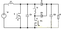 在每次主開關(guān)管S導(dǎo)通前,先導(dǎo)通輔助開關(guān)管S1,使輔助諧振網(wǎng)絡(luò)諧振。當S兩端電容電壓諧振到零時,導(dǎo)通S。當S完成導(dǎo)通后,立即關(guān)斷S1,使輔助諧振 電路停止工作。之后,電路以常規(guī)的PWM方式運行。該拓撲結(jié)構(gòu)在不增加電壓/電流應(yīng)力的情況下,實現(xiàn)了S的零電壓導(dǎo)通和D的零電流關(guān)斷。但由于S1是在大 電流(接近諧振峰值電流)下關(guān)斷、大電壓(接近輸出電壓)下開通, S1處于一種非常不好的硬開關(guān)環(huán)境。
